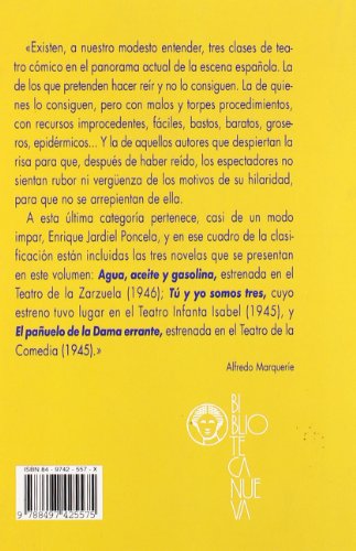Precio habitual €24,19 EURPrecio habitualPrecio unitario / por€24,00 EURPrecio de oferta €24,19 EURAutor: E. Jardiel PoncelaMarca: BIBLIOTECA NUEVA,S.LNúmero de páginas: 14Fecha de lanzamiento: 01-06-2013Detalles: Existen, a nuestro modo de entender, tres clases de teatro cómico en el panorama actual de la escena española. La de los que pretender hacer reír y no lo consiguen. La de quienes lo consiguen, pero con malos y torpes procedimientos, con recursos improcedentes, fáciles, bastos, baratos, groseros, epidérmicos Y la de aquellos autores... -