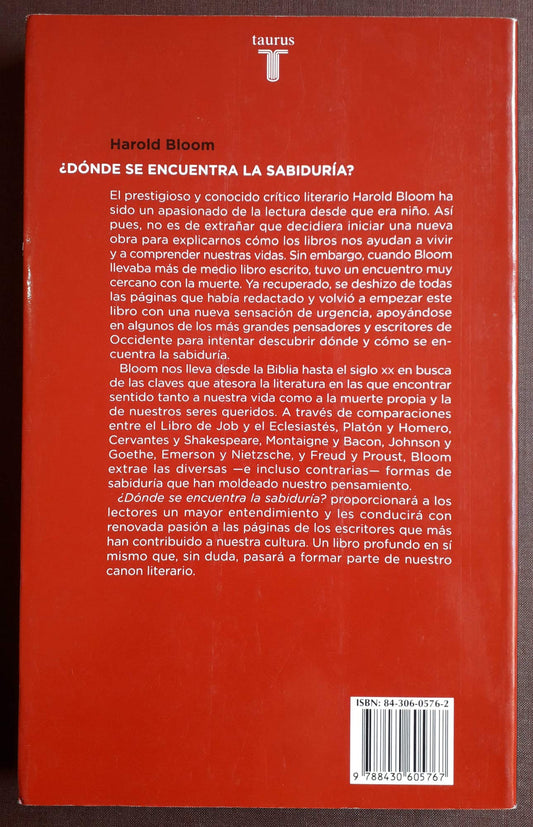 Precio habitual €14,17 EURPrecio habitualPrecio unitario / por€14,00 EURPrecio de oferta €14,17 EURAutor: Bloom, HaroldMarca: TAURUSNúmero de páginas: 264Fecha de lanzamiento: 26-04-2005Detalles: Harold Bloom regresa con renovada pasión para ofrecernos las claves que atesora la literatura para encontrar sentido a la vida. Harold Bloom regresa con renovada pasión para ofrecernos las claves que atesora la literatura para encontrar sentido a la vida. El prestigioso y conocido crítico literario Harold Bloom ha sido un apasionado de la lectura... -